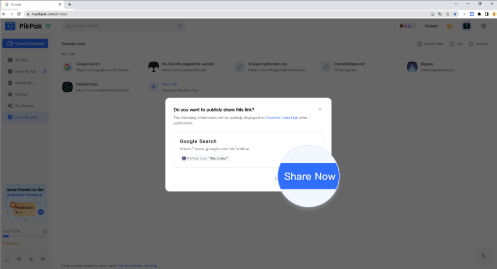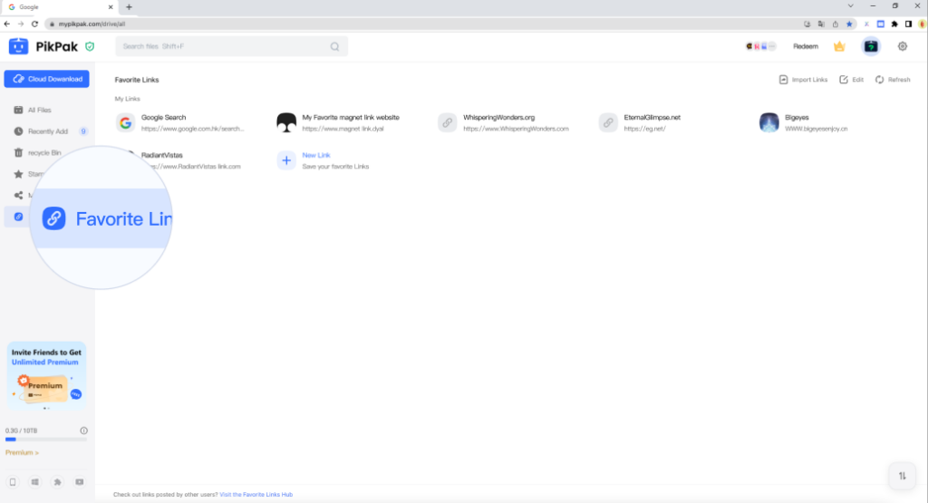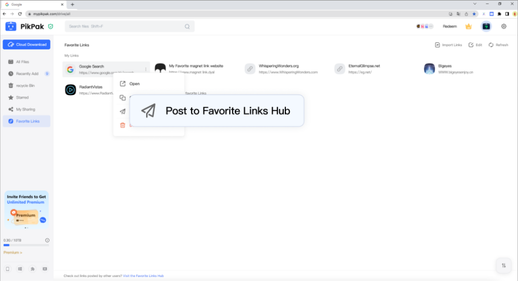 웹사이트 링크를 링크 즐겨찾기 센터에 게시하는 방법 PikPak, 2024-03-192025-05-26 효율적인 웹사이트 링크 관리가 중요합니다. 픽팍의 링크 즐겨찾기 기능은 컬렉션, 관리, 공유를 위한 완벽한 해결방안을 제공합니다. 여기에 저장된 웹사이트 링크는 손실되지 않으며, 원하시는 링크를 저장할 수 있을 뿐만 아니라 즐겨찾기된 웹사이트 링크를 다른 사용자와 공유할 수도 있습니다. 다음 단계를 통해 웹사이트 링크를 즐겨찾기 링크 센터에 게시하는 방법을 알아보세요. 1 단계: 게시할 링크를 링크 즐겨찾기에 추가하기 브라우저 확장 프로그램에서 “현재 웹사이트 링크를 픽팍에 즐겨찾기”메뉴 옵션을 클릭합니다. 즉 웹사이트 리크를 “링크 즐겨찾기”에 저장할 수 있습니다. 픽팍 브라우저 확장 프로그램을 아직 설치하지 않은 사용자는 [픽팍 홈페이지] 방문하여 [픽팍 브라우저 확장] 프로그램을 다운로드하여 설치할 수 있습니다. 2 단계: 픽팍 클라우드를 열고 “링크 즐겨찾기” 탭으로 전환하기 픽팍 클라우드를 열고 “링크 즐겨찾기”탭으로 전환합니다.이 페이지에서 본인이 즐겨찾기된 모두 웹사이트 링크를 확인할 수 있습니다.또한 즐겨찾기 페이지에서 사용자가 원하신 링크를 추가할 수 있게 “새 링크 즐겨찾기를 만들기”기능이 지원했습니다. 3 단계: “더 많은”버튼을 클릭하면 “링크 즐겨찾기 센터에 게시”에 게시 버튼을 볼 수 있습니다. 링크 즐겨찾기을 탐색하고 게시할 링크를 찾습니다. URL 링크 오른쪽에 있는 “더 많은” 버튼을 클릭하면 드롭다운 메뉴가 나타납니다. 메뉴에서 “링크 즐겨찾기 센터에 게시” 작업 버튼을 볼 수 있으며, 이는 다음 공유 단계를 준비하는 것입니다. 4 단계: 링크 즐겨찾기 센터에 링크 게시 “링크 즐겨찾기 센터에 게시”작업 버튼을 클릭합니다.시스템은 확인 창을 띄우고 링크 공유에 대한 동의를 요청합니다.확인하고 동의하면 웹사이트 링크가 링크 즐겨찾기 센터에 성공적으로 게시되고 다른 사용자가 공유된 웹사이트 링크에 접근하고 활용할 수 있습니다. 사용 중에 문제나 불편함이 있으면 언제든지 support@mypikpak.com 으로 이메일을 보내주세요. 저희가 도와드리겠습니다. Features 한국어