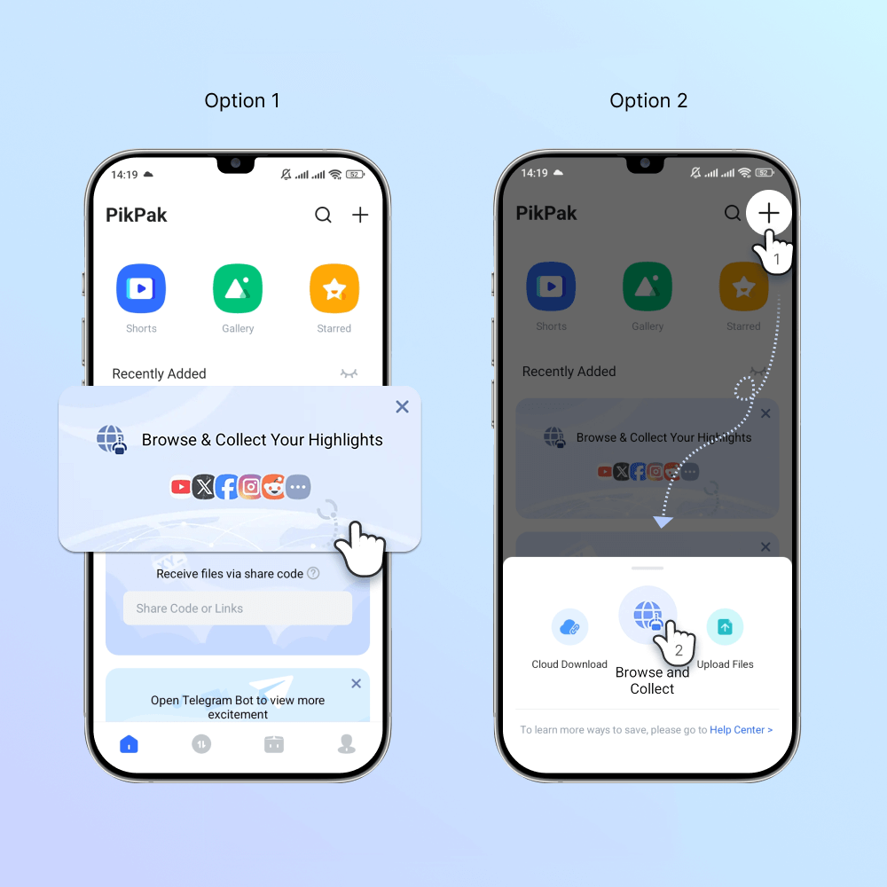 이 기능은 PikPak에서 특별히 제작한 브라우저를 통해 제공됩니다. 아래 이미지를 참고하여 이용 방법을 확인해 주세요.